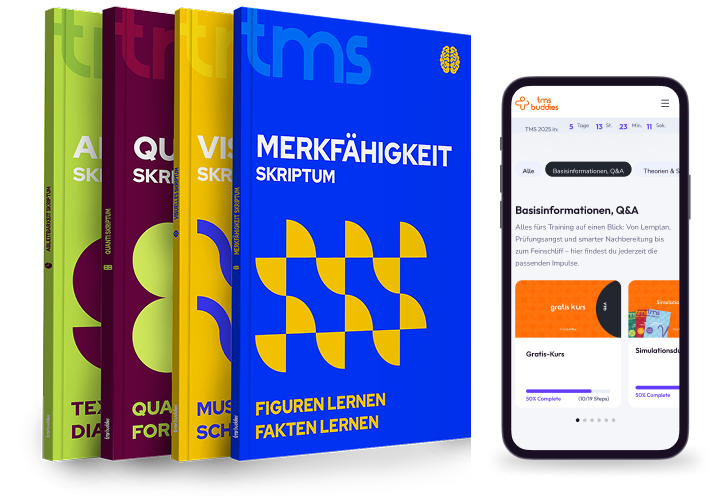 Ja, wir bieten mittlerweile auch Kompendien an, die dich gezielt bei deiner TMS-Vorbereitung unterstützen. Diese enthalten strukturiert aufbereitetes, prüfungsrelevantes Wissen und helfen dir dabei, die wichtigsten Inhalte effizient zu wiederholen. Zusätzlich stellen wir dir realitätsnahe Simulationen zur Verfügung, die auf Basis echter TMS-Durchgänge erstellt wurden und somit in Schwierigkeit und Aufbau genau dem Original entsprechen. Uns ist es besonders wichtig, dass du nicht einfach nur möglichst viele Aufgaben bearbeitest, sondern mit einem klaren Plan und echtem Verständnis an deine Vorbereitung herangehst. Deshalb setzen wir auf Qualität statt Quantität: Unsere Materialien enthalten ausführliche Lösungsvideos und bieten dir die Möglichkeit, dich in unserem Discord-Forum mit anderen Teilnehmenden auszutauschen und offene Fragen zu klären. So holst du aus jeder Aufgabe das Maximum heraus – mit System, Tiefe und Motivation.